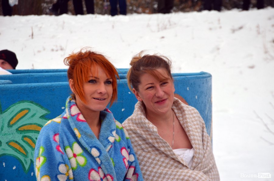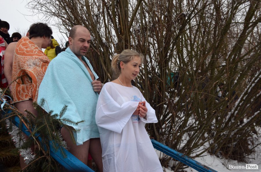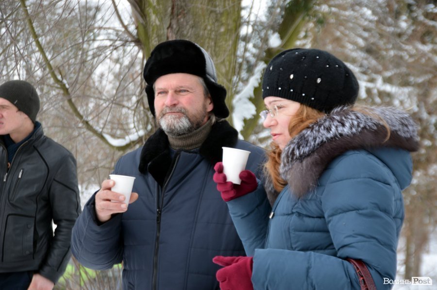 У Луцьку сотні людей прийшла до Центрального парку, аби долучитися до освячення води у Стиру та скупатися у льодяній воді на честь свята Хрещення.