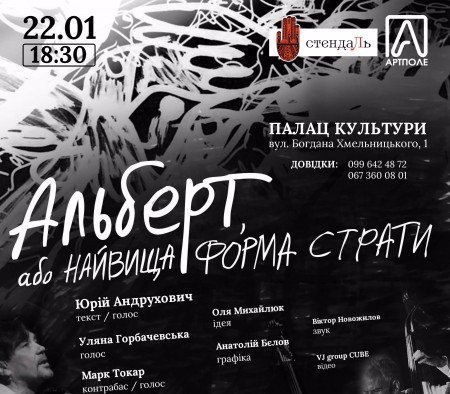 «Альберт» створений за однойменним оповіданням Юрія Андруховича. У центрі дійства — історія винахідливого шахрая Альберта Вироземського, який погоджується віддати душу дияволу аби уникнути смертної кари. Але підписана кров'ю угода не спрацьовує — й одного осіннього дня року 1641-го його привселюдно спалюють посеред львівської площі Ринок. Цей твір є новою формою оповідання, яка поєднує в собі текст, прочитаний і прожитий автором на сцені, з ілюстраціями, і не лише графічними, але й музичними — від автентики до фрі-джазу. «Альберт» ніколи не буває точним повторенням себе попереднього — щоразу знаходяться нові рішення, підказані місцями, обставинами, аудиторією. Учасники ж вистави завжди готові до експерименту.