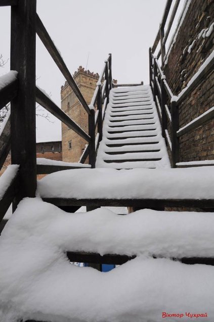 "В пошуках привида Білої Панни у Стировій вежі... Ми її знайшли! Вона втекла з вежі і розсипалась білим снігом у нашім замку, Приходьте у зимовий замок подивитись на Білу Панну, поки Вона ще там... Любіть рідне місто!" - закликав фотограф.
