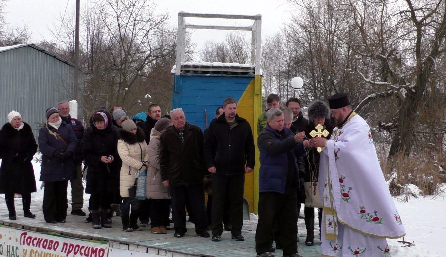 Працівники Центру туризму підготували на озері ополонку та облаштували теплу роздягальню. Перед купанням отець місцевої церкви прочитав молебень, освятив людей та воду.