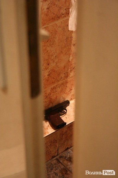 Пістолет лежав акуратно під стіною біля унітазу. На момент знахідки в туалеті і біля нього нікого не було, світло було вимкнене.