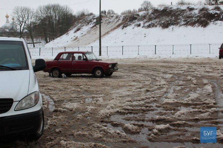 У Володимирі-Волинському через танення снігу практично неможливол проїхати по безкоштовній парковці, яку ніхто не прибирає.