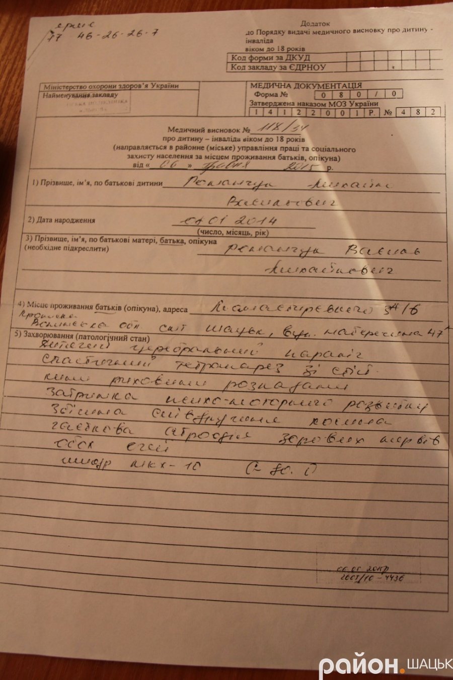 Хлопчик росте розумним, допитливим, з задоволенням грається з іншими дітьми, проте не ходить. Єдине, що може робити з таким діагнозом – це стояти з підтримкою, – пише Район.Шацьк.