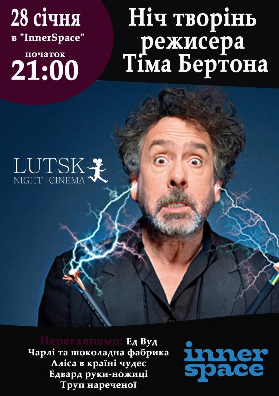 Антикафе «InnerSpace» запрошує усіх охочих лучан на нічний перегляд творінь режисера Тіма Бертона.