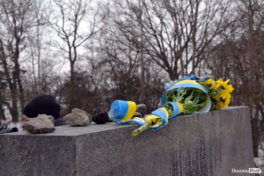 Молитву для вшанування загиблих прочитав очільник Волинської релігійної громади прогресивного іудаїзму Сергій Швардовський. Також за традицією представники громади поклали до монументу загиблим камені, які довговічніші, ніж квіти.