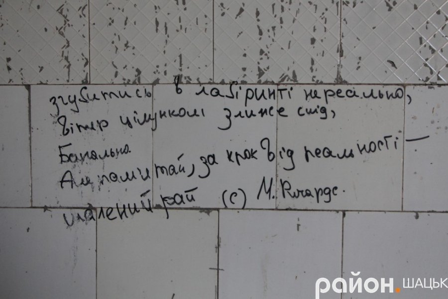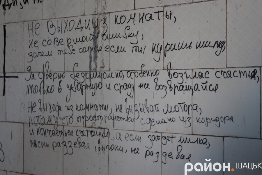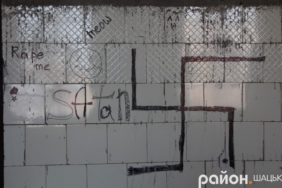 Дивні написи побачив чоловік, який мешкає поблизу старих запущених приміщень Шацького рибцеху (вулиця 50 років Перемоги). Зазначається, що в них давно не ведеться ніяка діяльність, двері завжди відчинені.
