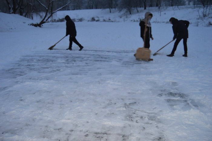Цьогорічна зима щедра на сніг, тому доводиться після кожного снігопаду повторно розчищати льодову поверхню майданчиків для проведення зимових розваг та гри в хокей. У мікрорайонах, де на природних водоймах є вищезгадані ковзанки, працівники центру Ніна Лисенко та Володимир Наумук неодноразово організовують дітей-активістів та разом з ними виконують цю благородну справу.