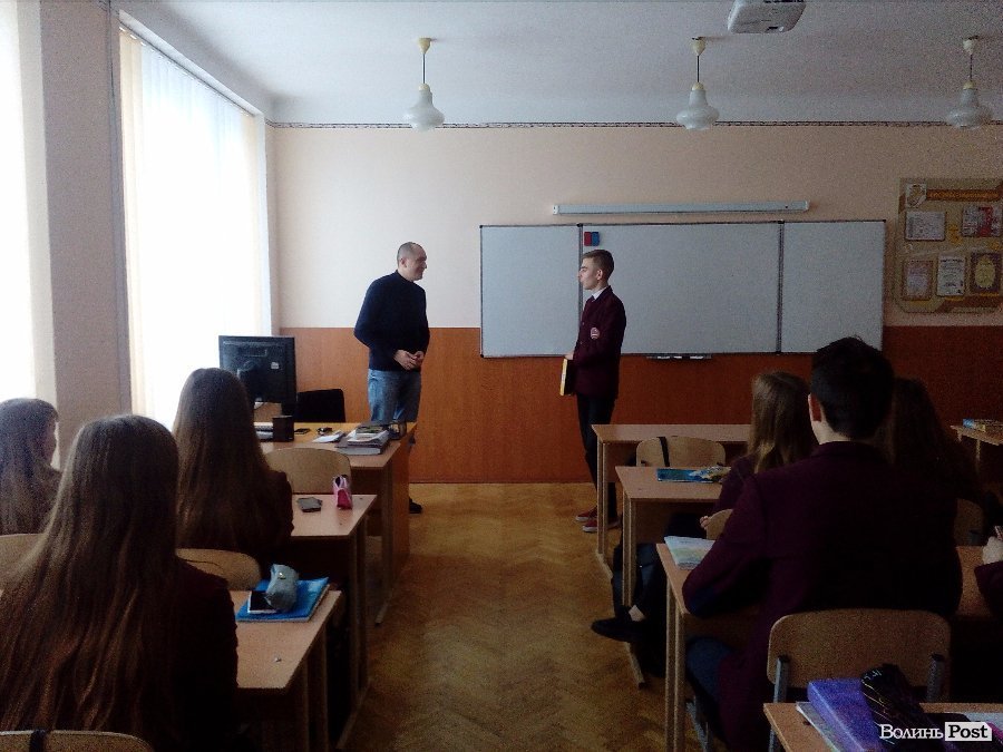 Школярі Луцького НВК гімназії №14 ім. Василя Сухомлинського запросили до себе на урок депутата Луцької міської ради Микола Яручика.