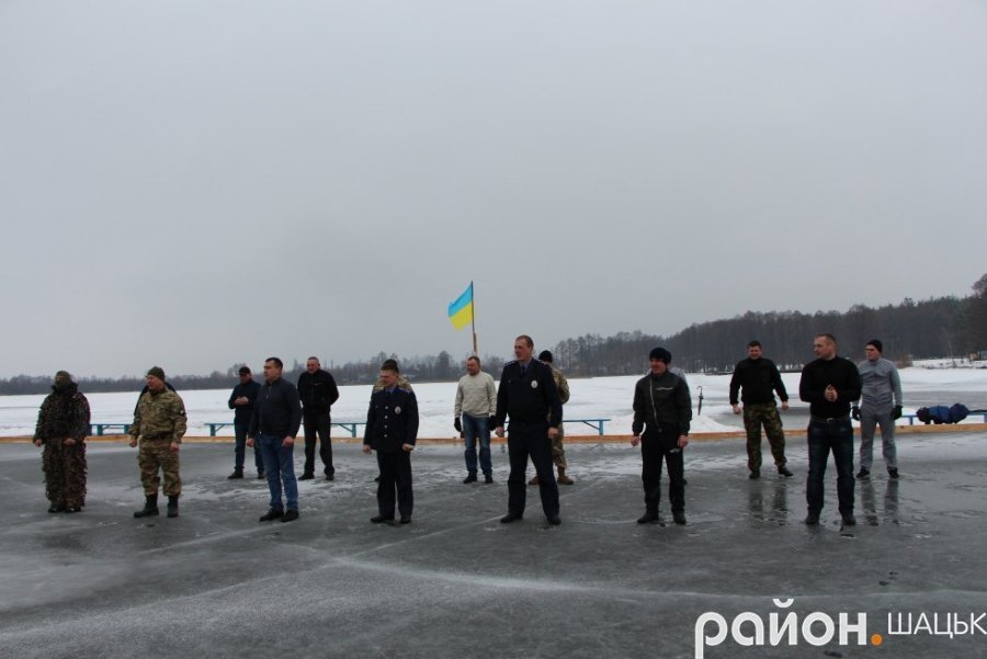 Хоч надворі йшов дощ із снігом, а на поверхні озера стояла вода, бійці не захотіли змінити місце проведення акції на більш комфортне.
