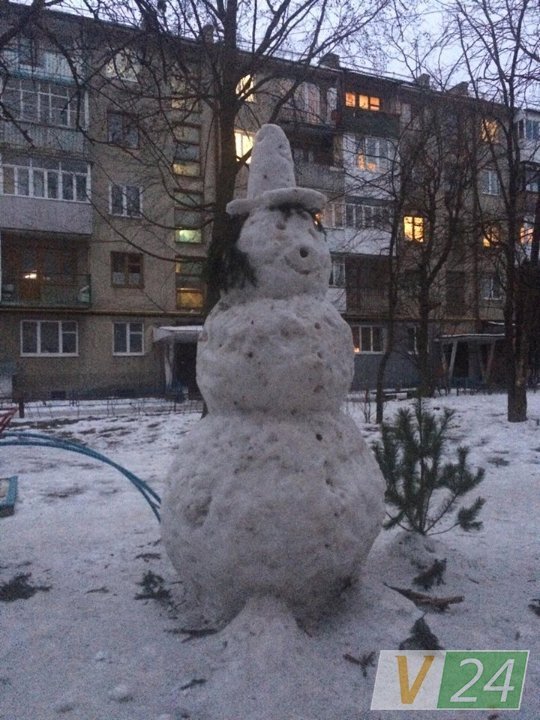 У Луцьку на дитячому майданчику нещодавно з'явився величезний сніговик.