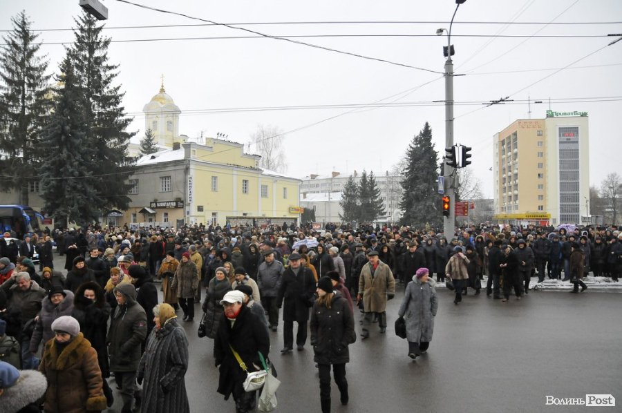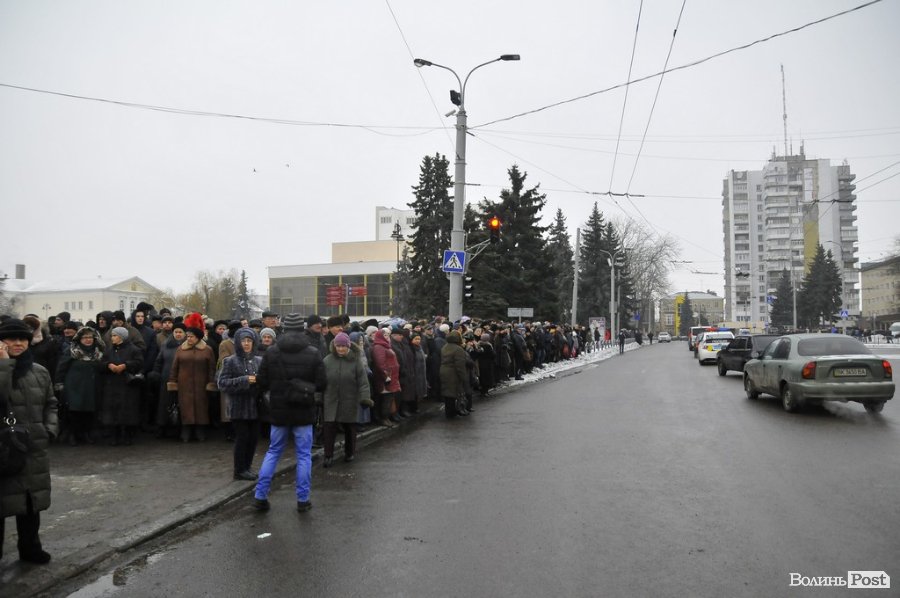 У Луцьку тисячі людей прийшли, аби попрощатися з міським головою Миколою Романюком.