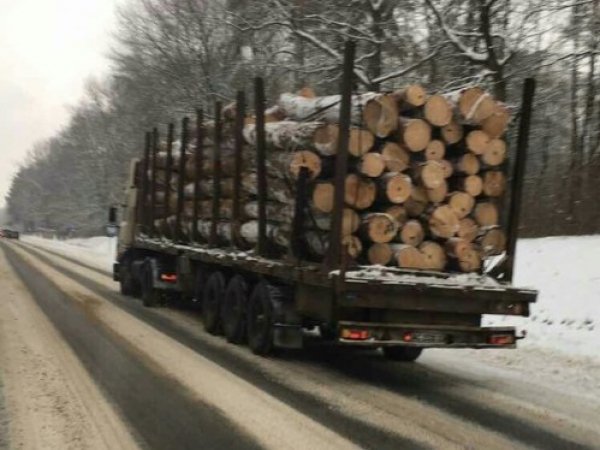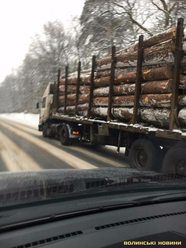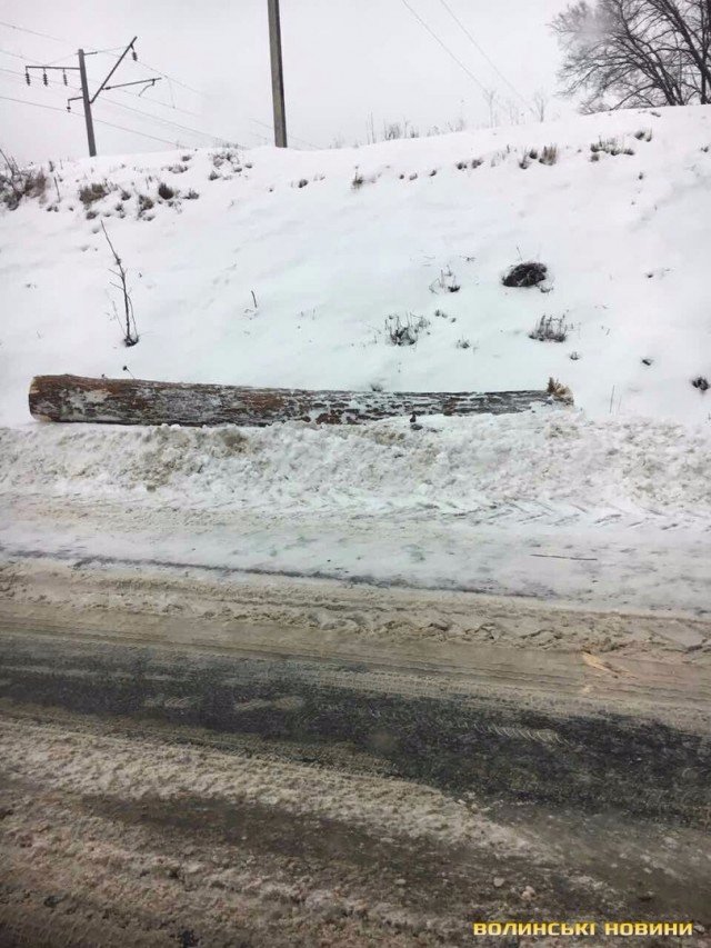 Колода, яка випала з вантажівки, що рухалась дорогою, ледь не побила машину в Луцьку.