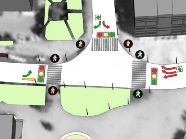 Так, автори проекту пропонують збільшити кількість світлофорів та налаштувати їх таким чином, аби врегулювати рух пішоходів та автомобілів.