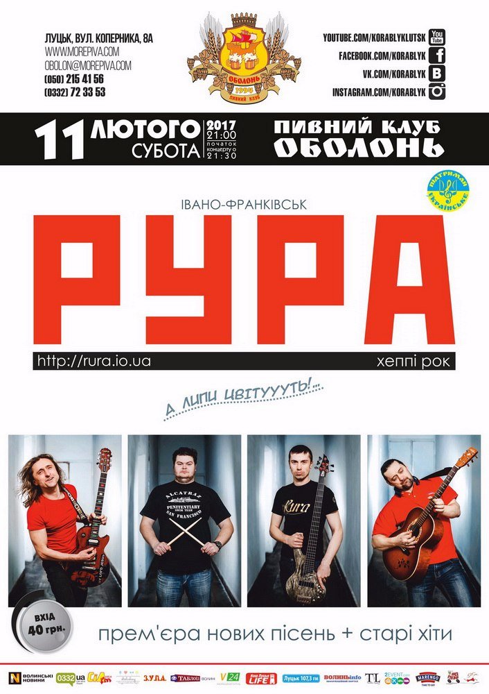 Нарешті ця славна команда знову завітає до Кораблика аби вчергове заспівати наживо свої легендарні "..а липи цвітуть!.." та багато інших бойовичків. Рурівці позиціонують себе як виконавці хеппі-року, мішаючи до купи фольк, стьоб, панк, рок-н-ролл з позитивним нахилом.