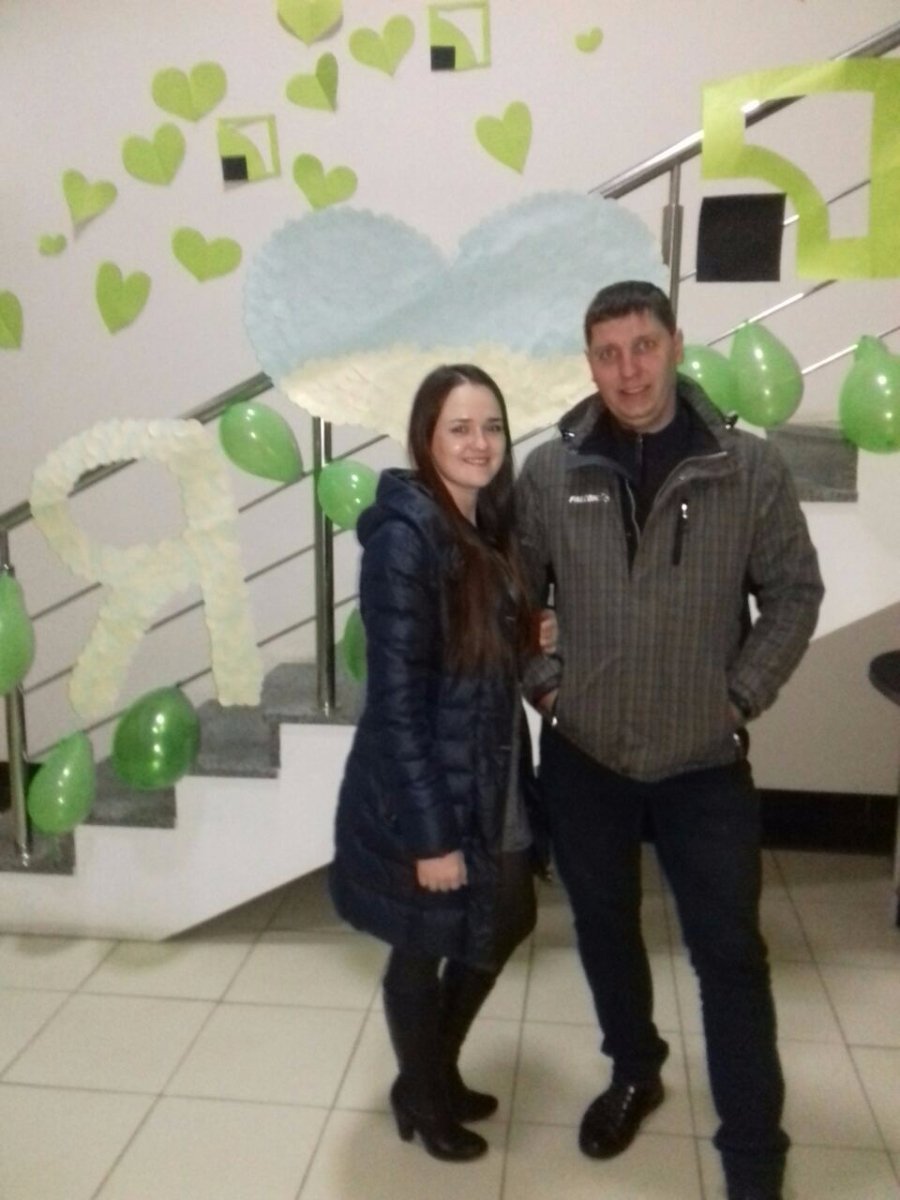 Ще одне подружжя працює в ПриватБанку. 11 років разом Ольга та Юрій. Чоловік у банку більше 10 років. Зараз працює водієм-інкасатором-охоронцем. Дружина Ольга взяла приклад з коханого і вирішила спробувати свої сили у фінансовій установі - після декретної відпустки взяла участь у конкурсному відборі до ПриватБанку та одержала хороші результати. Вже півтора року Ольга Максимчук працює оператором у Кол-центрі.