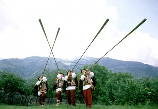 «Є традиція зустрічати гостей позивними на трембіті, але трембіта не проста, а з сантехнічних труб», – пояснив місцевий етнограф-активіст Траян Мустяца.