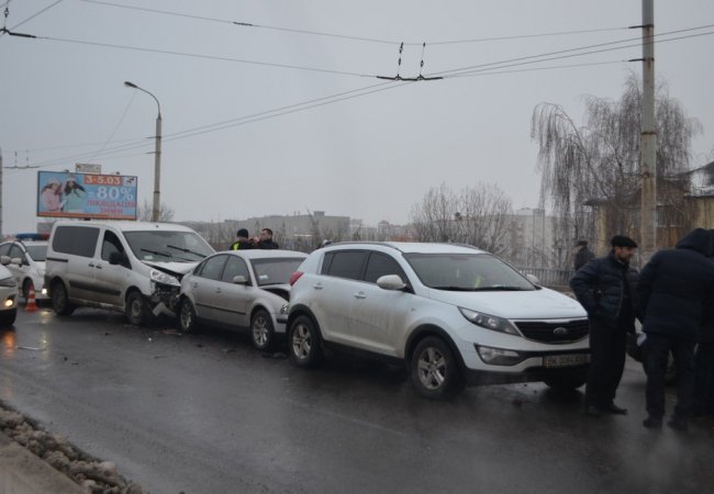 Дещо раніше на Перемоги сталася аварія біля школи №5, тож автівки мостом рухалися нешвидко, періодично гальмуючи. Водій автомобіля Fiat Scudo намагався перелаштуватися в іншу смугу руху. Проте, не розрахувавши дистанції та швидкості, Fiat в’їхав у Volkswagen, який по інерції вдарив автомобіль КІА.