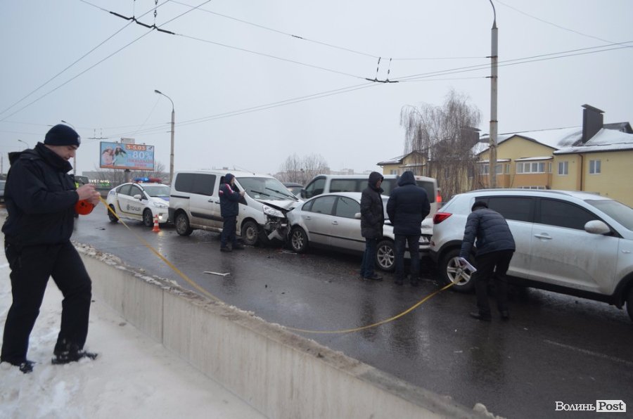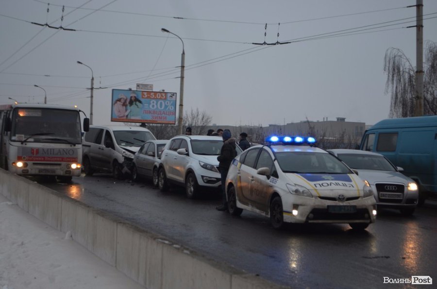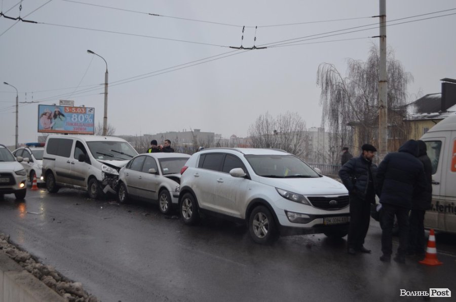 У Луцьку на мості між проспектами Перемоги та Соборності сталася дорожньо-транспортна пригода за участю трьох автівок. На щастя, внаслідок зіткнення ніхто не постраждав.