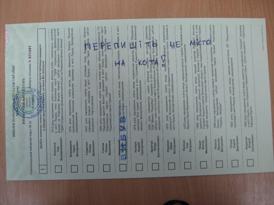 За інформацією сайту Гузя, більшість коробок із бюлетенями не були опломбовані, а просто перемотані скотчем. Під багатьма протоколами немає підписів, самі скриньки валялися під стінами ОВК.