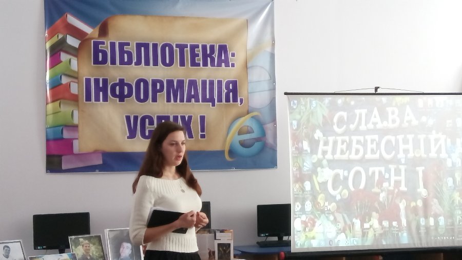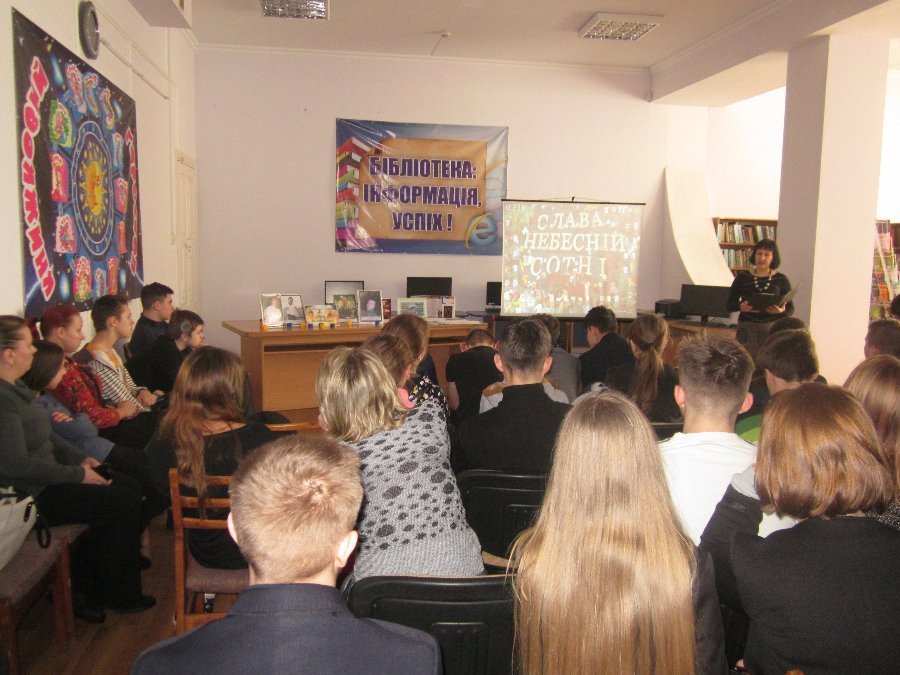 В залі центральної бібліотеки для дітей відбулась зустріч з минулим заради майбутнього «Герої Небесної Сотні –герої вічності», - повідомила директор центральної бібліотеки для дітей Ніна Бочарова.