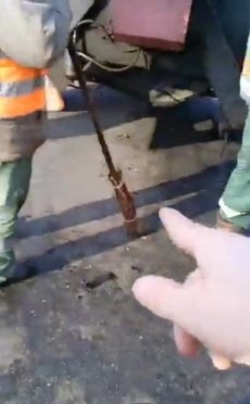 Під час візиту активіста працівники автодору призупинили роботу, почали ховати техніку. На відео Андрій Кандиба поспілкувався із ними. З його слів, торік у квітні вони вже ремонтували цю ділянку дороги.