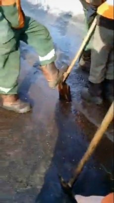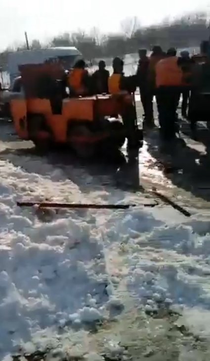 Ремонт доріг по-волинськи: лопатами і мітлою кладуть асфальт на сніг