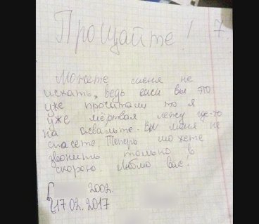 Двоє дівчаток пішли з дому, бо отримали останнє завдання у "групі смерті": стрибнути із багатоповерхівки. На щастя, одну ми швидко знайшли. На пошуки іншої було задіяно більше 200 працівників поліції: знайшли через кілька годин на 16 поверсі будинку, із ознаками переохолодження. На руках і ногах - вирізані малюнки, символи, слова... Врятували, передали лікарям і батькам. З нею працюють поліцейські психологи.