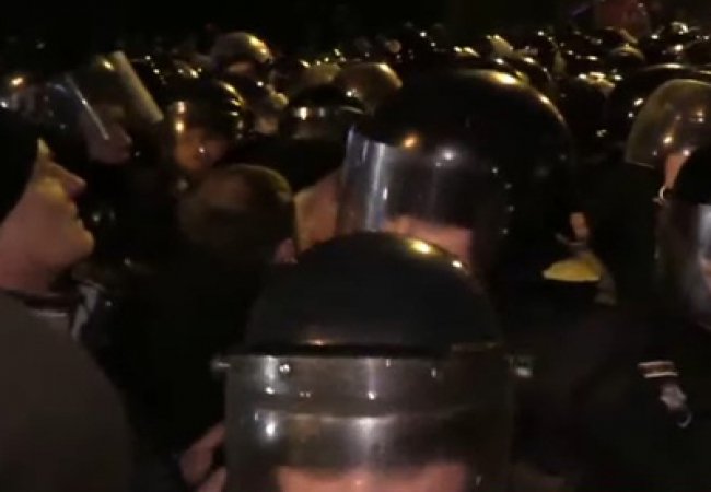 Як зазначає Громадське, протестувальник кидали петарди у поліцію та намагалися зламати паркан, встановлений правоохоронцями, аби пройти до будівлі АП, правоохоронці їм перешкоджали.