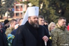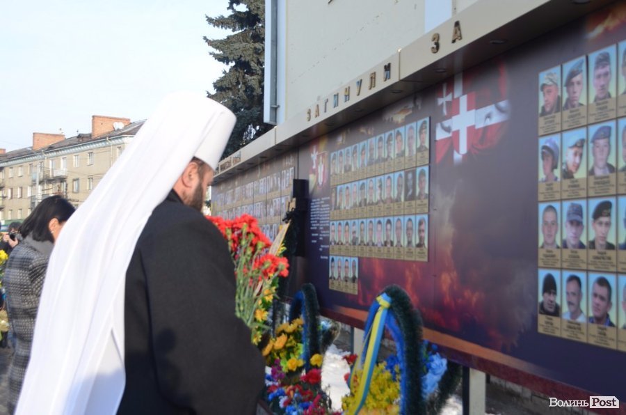 Біля фотостенду митрополит Луцький та Волинський Михаїл разом із священослужителями 20 лютого відслужив молебень.