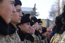 Обіч стенду вишикувалися курсанти військового ліцею, встановивши символічну почесну варту.