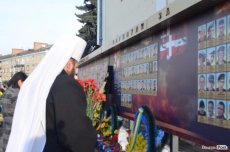 «Це місце, попри яке ми проходимо, світиться очима багатьох людей, які зображені тут на фотографіях і які дивляться в майбутнє – наше з вами майбутнє», - зазначив після відправи Михаїл. Тож він запросив усіх охочих покласти квіти до стенду, аби так вшанувати тих, хто ціною власного життя захистив усіх українців.