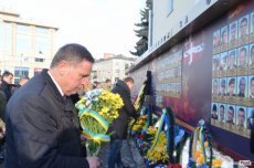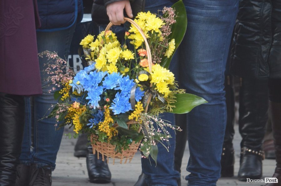 У Луцьку до пам’ятного фотостенду героїв Небесної Сотні та Театральному майдані десятки лучан принесли квіти, аби вшанувати загиблих на Майдані Героїв.