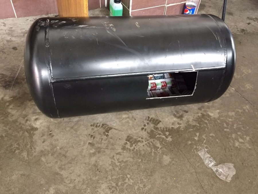 Куриво було приховане в спеціально виготовленому сховку, а саме – в балоні системи газового обладнання та між заднім пасажирським сидінням і газовим балоном. Всього зі сховку витягли майже 1 тисячу пачок сигарет.