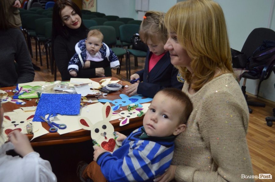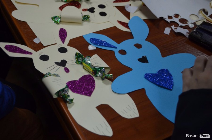Діток працівники Луцький міський центр соціальних служб для сім'ї, дітей та молоді займалися із дітьми. Разом із малечею волонтерки виготовили паперових зайців, співали пісеньок та ласували солодощами.
