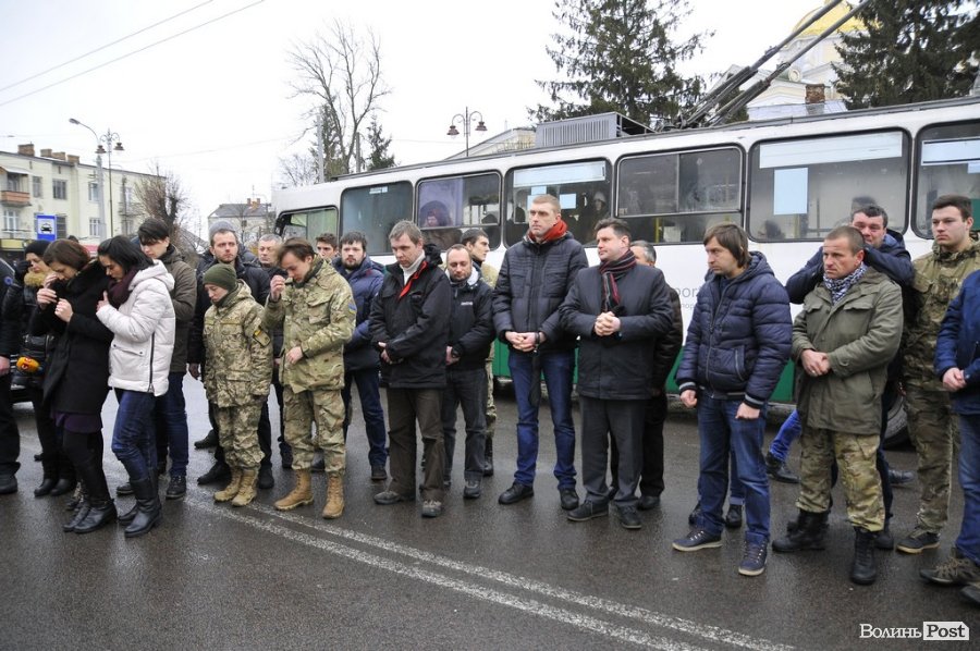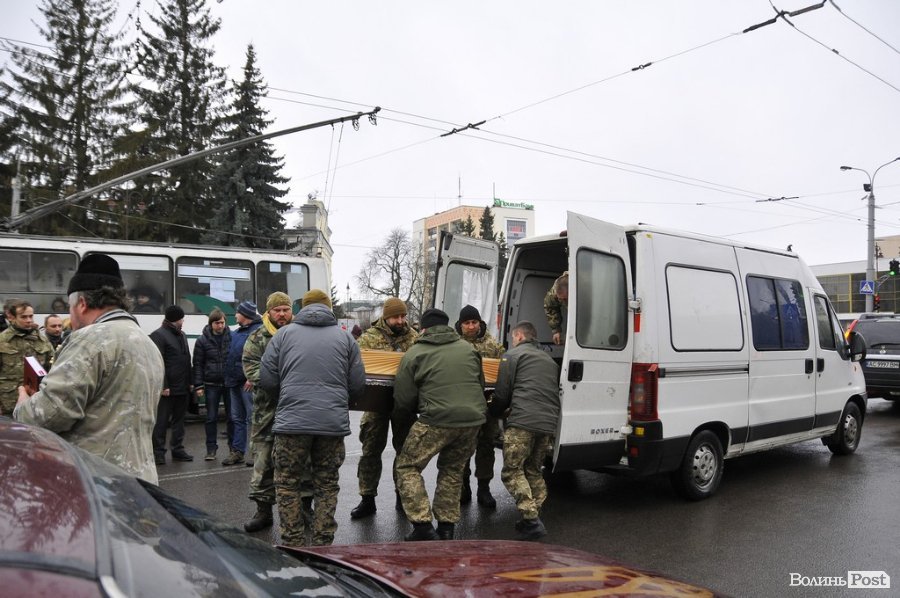 21 лютого тіло доставили в Луцьк. Зустрічали його на Цуманському пості. Звідси вулицею Рівненською та проспектом Волі процесія проїхала в центр міста. Тут священик відслужив молебень за загиблим.
