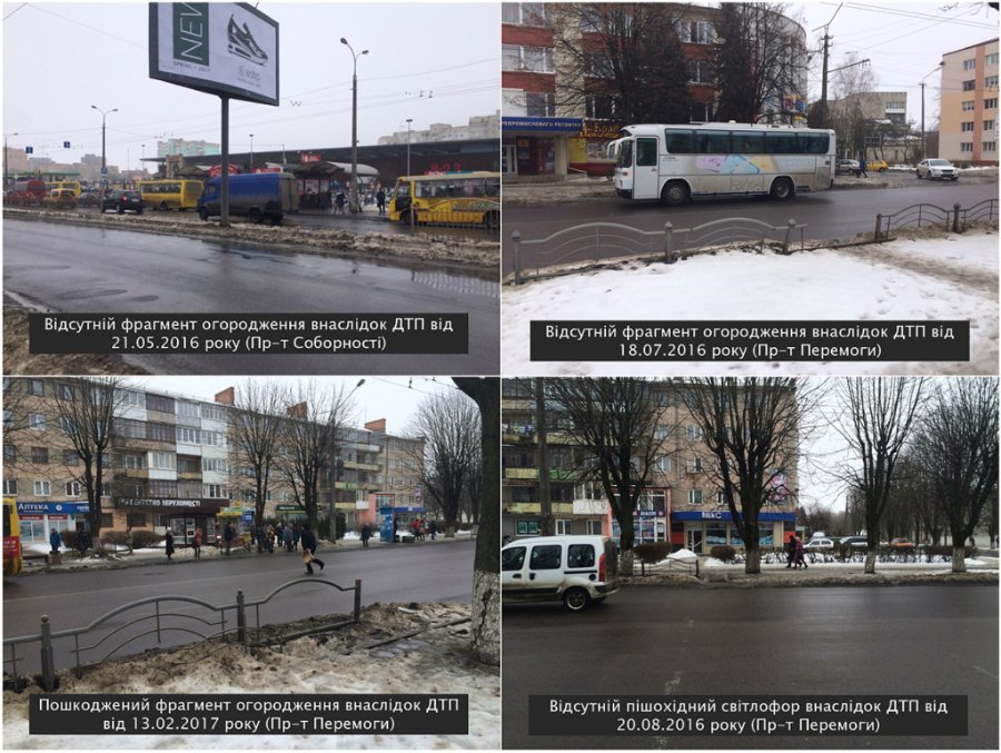 Як зазначає автор, у Луцьку є численна кількість огороджень, світлофорів та інших об'єктів, що були пошкоджені внаслідок дій учасників ДТП. «Варто зазначити, що через дані «дірки» у огородженні створився неконтрольований пасажиропотік, що значно підвищив рівень аварійності у даних місцях», – йдеться в тексті.