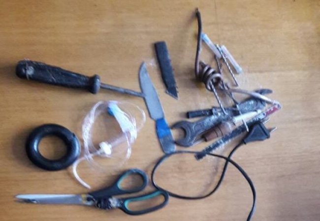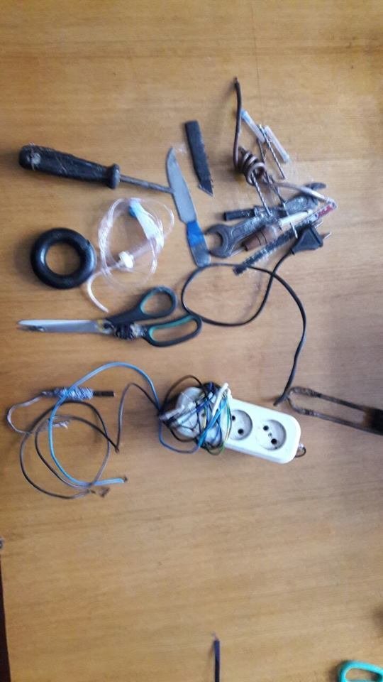 Під час перевірки також провели вибіркові обшуки на території колонії та виявили заборонені предмети: пігулки невідомого походження, ножі, електрообладнання з порушенням техніки безпеки, голки для ін’єкцій.