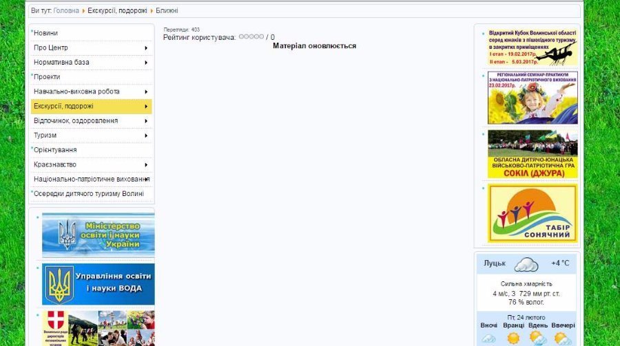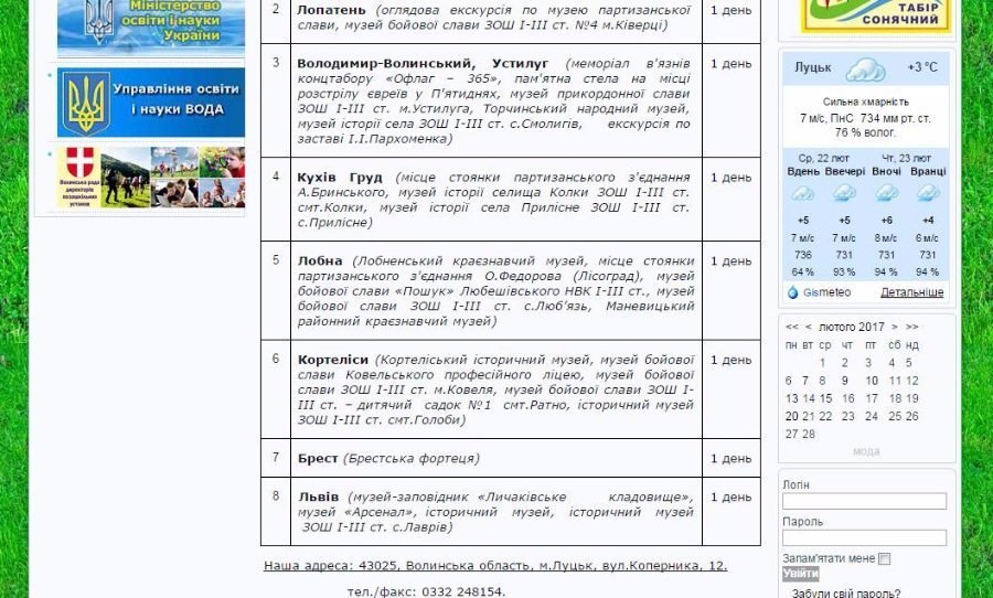 До кінця роботи семінару з сайту Волинського центру туризму розклад ближніх екскурсій зник. Лишилися лише мої скріншоти, де чітко видно вчорашнє число на календарі та сьогоднішня пуста сторінка. Кураторка роботи Центру туризму з обласного управління освіти Малащук Оксана Григорівна вирішила заперечити мій закид у виступі щодо нових маршрутів для екскурсій та принесла брошуру, яку, за її словами розробили працівники Волинського центру туризму місцями діяльності УПА.