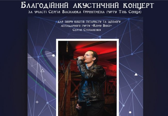 У Палаці культури міста Луцька в суботу, 25 лютого, відбудеться благодійний концерт за участю лідера гурту «Тінь Сонця» Сергія Василюка.