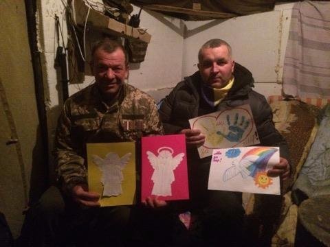 Привезли гостинці для дітей активіст Радим Романюк та депутат Луцькради Микола Собуцький, які нещодавно повернулися зі Сходу. Романюк розповів, що під час останньої поїздки на передову він помітив у наметі бійців малюнки.