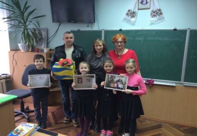 На прохання бійців, волонтери організували подарунок для дітей, та сьогодні відвезли у школу канцелярські набори для учнів з 2-А, 3-А та 4-Г класів. Під час зустрічі із волонтерами у класі були присутні діти, малюнки яких висять у наметах військових на Сході, і саме вони чи не найбільше зраділи зустрічі.