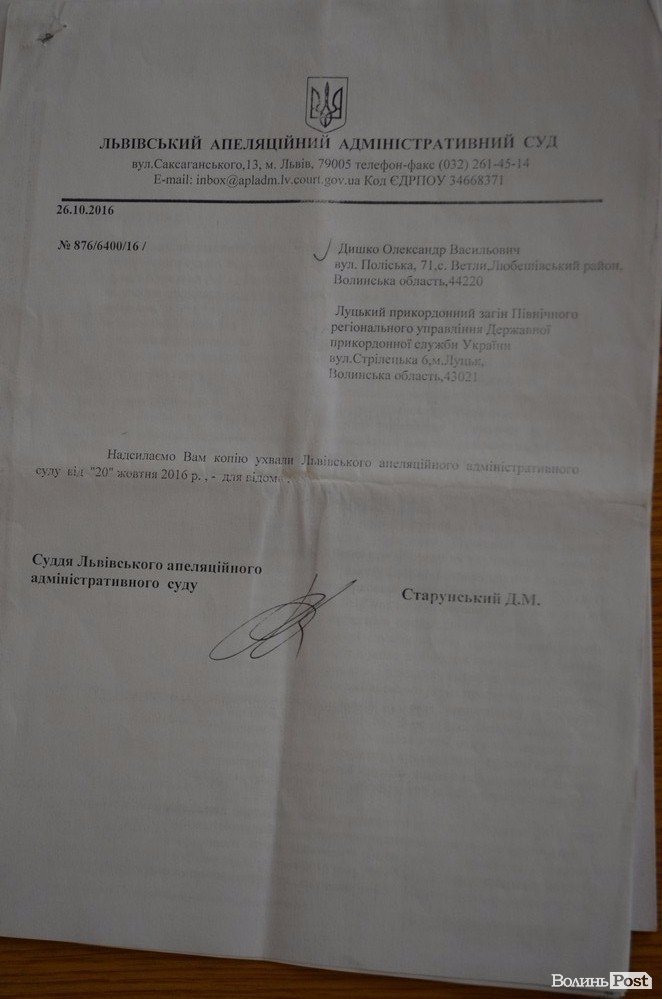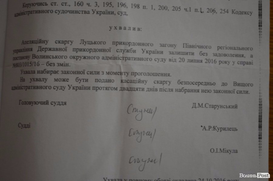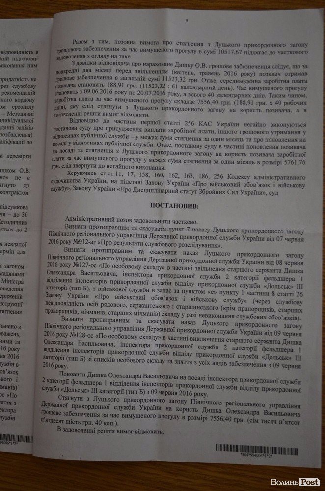Боєць хвилюється за свою подальшу долю – мовляв, у селі роботи більше не знайде, а на забезпеченні у нього дружина, 10-тимісячна дитина та теща–інвалід 2 групи. Тому прикордонник запевняє, що готовий до кінця боротися за справедливість.