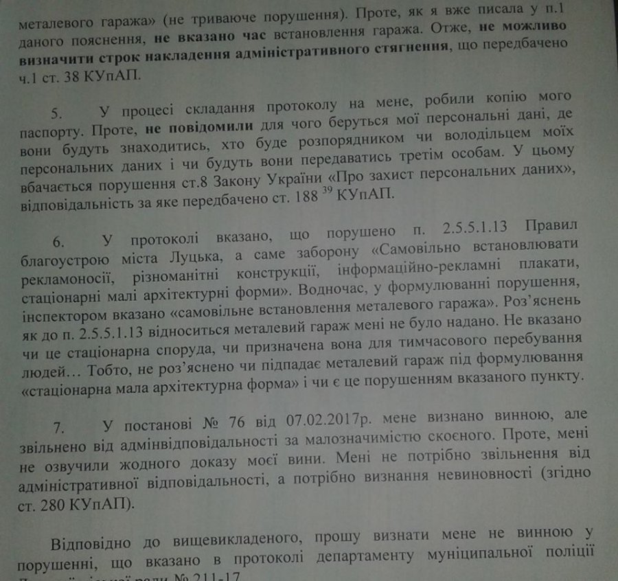 Адмінкомісія Луцької міськради цю справу розглянула. Після того, як жінка вказала на порушення при складанні адмінпротоколу, її звільнили від сплати штрафу, бо вона мати-одиначка і за малозначимістю порушення. Водночас – залишили винною.