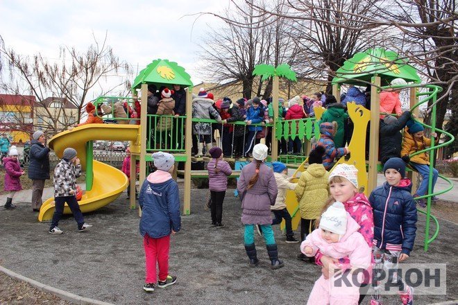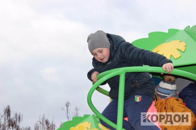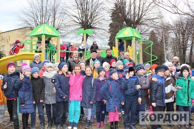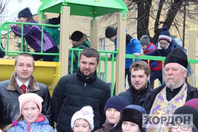 Діти випробували нові яскраві конструкції. Окрім рекреаційної платформи, школярів потішили солодкі гостинці від народного обранця та безпосередньо сам обряд освячення майданчика священнослужителями.