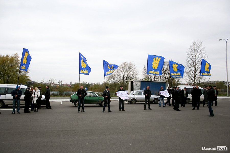 На пікеті були присутні депутат Волинської обласної ради, член волинської «Свободи» Олександр Пирожик, депутат Луцької міської ради Святослав Боруцький, інші члени організації.