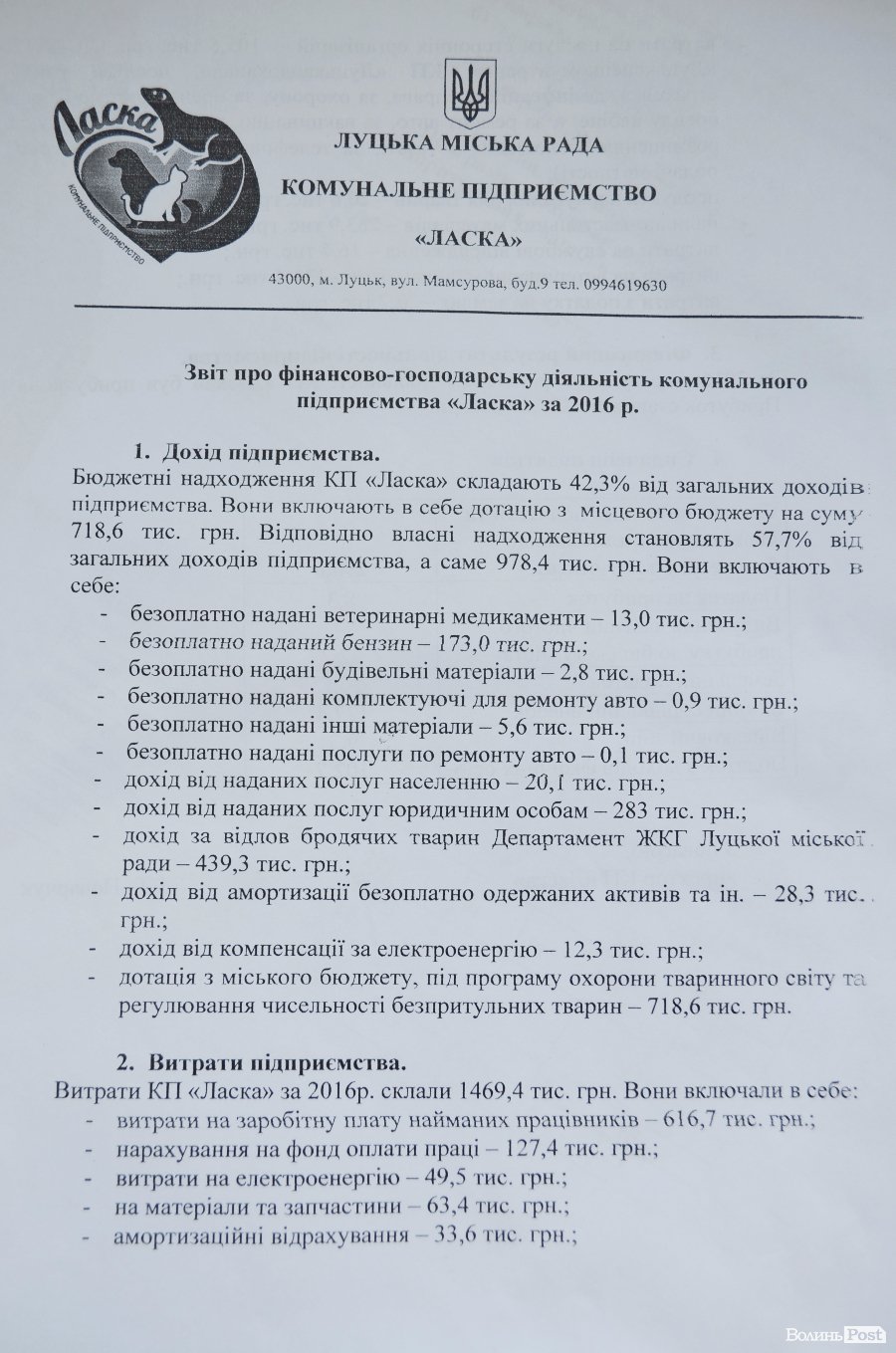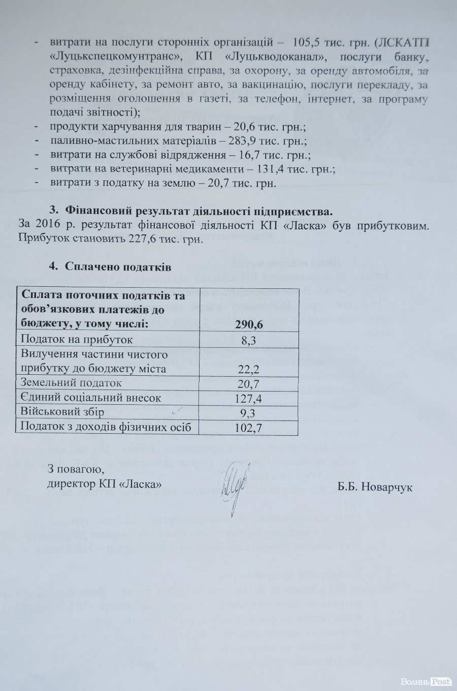 За минулий рік витрати комунального підприємства «Ласка» значно перевищили доходи, та навіть попри це, керівник притулку називає 2016 рік прибутковим для підприємства.