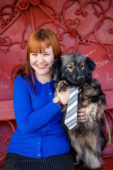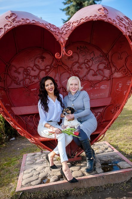 Дана Новарчук – директор КП «Ласка» із Катериною П‘ятачук – модель, зоозахисник, волонтер КП «Ласка» та з собачкою Еммі