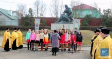 Після молитви виступила викладач педагогічного коледжу імені Кримського Галина Шостак із своїм студентом. Вихованець педагогічного коледжу продекламував вірш «Розрита могила». Також було і вокальне виконання віршів Кобзаря. Зокрема, учасник «Голос країни. Діти» Олександр Чишій заспівав «Гамалія». Від учнів гімназії Цинкаловського було представлений уривок із п’єси «Великий льох».