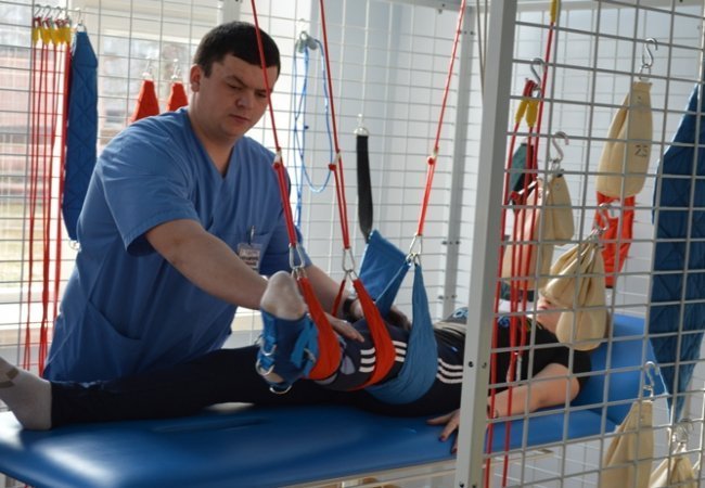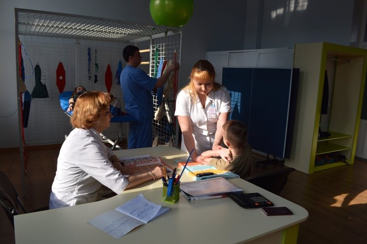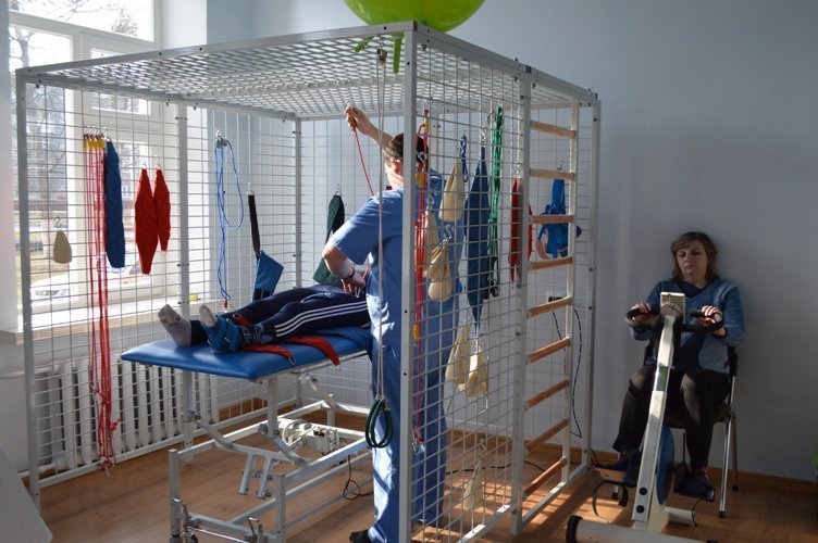 Про нововведення у роботі фізіотерапевтичного відділення розповіла його завідуюча Лариса Куролес: «Раніше це був кабінет лікувальної фізкультури, саме на його базі і створено таку спеціалізовану кімнату. Основним її компонентом, найважливішою частиною є універсальна кабіна підвісної терапії або «реабілітаційна клітка». Доведено, що у підвішеному стані м’язи перебувають наче у невагомості, і так швидше здобувають функціональну силу».