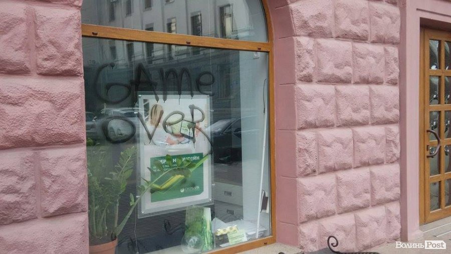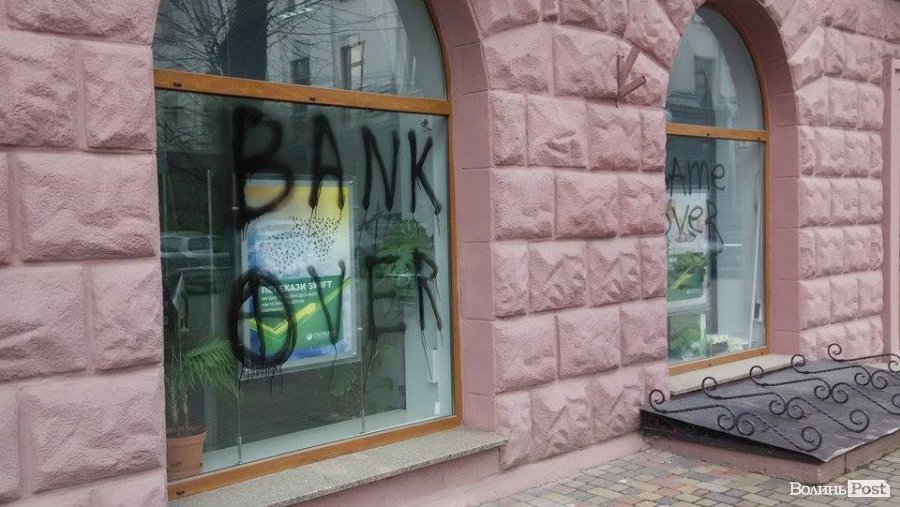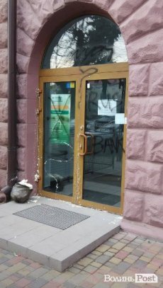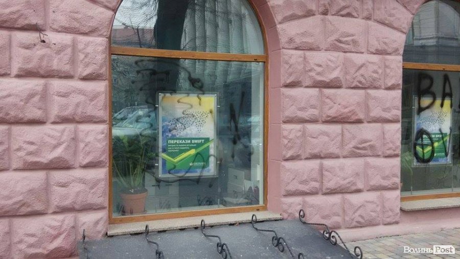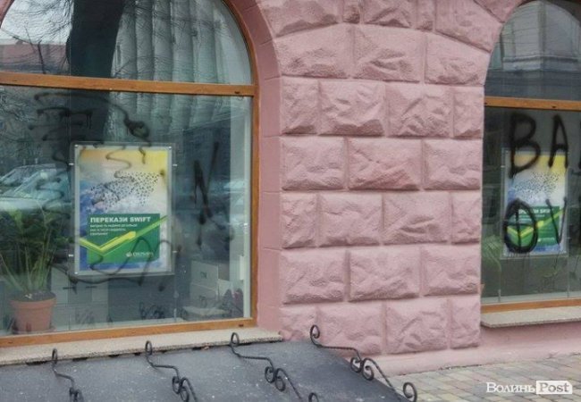 У Луцьку чорною фарбою розмалювали двері та вікна приміщення, яке займає відділення "Сбербанку Росії".